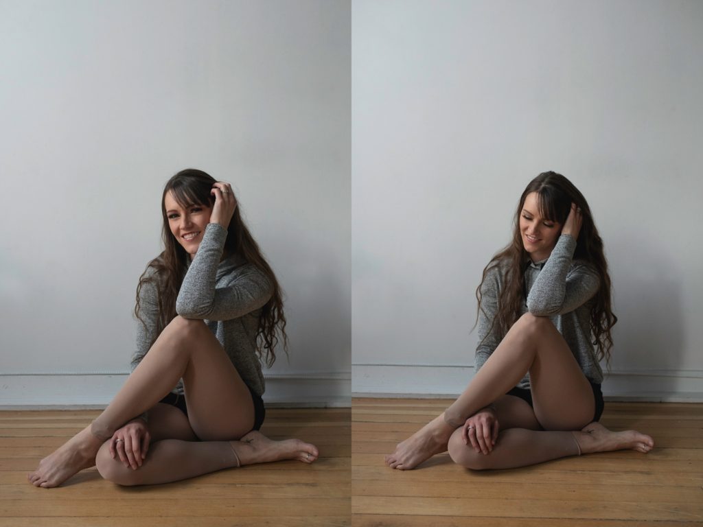 This stunner of a lady came into the studio for a session, and when we were planning and talking about a dance theme, she offered up, “I have a Black Swan costume I made for Halloween, would you like me to bring it in?”