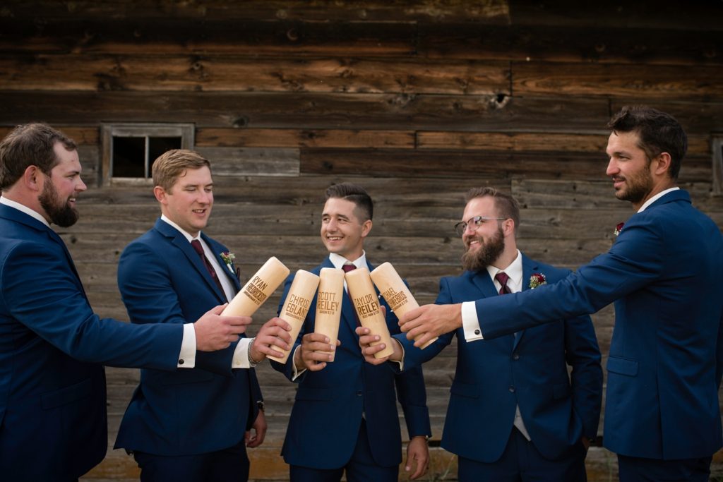 groomsmen playing plink in barn at wedding reception